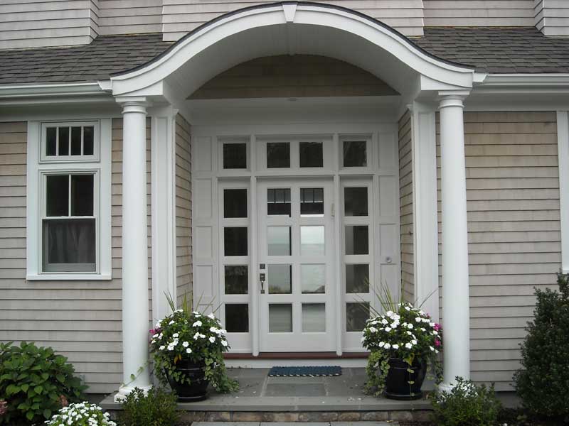 la porta di ingresso è splendida, mi piacciono un sacco le finestre incorniciate così